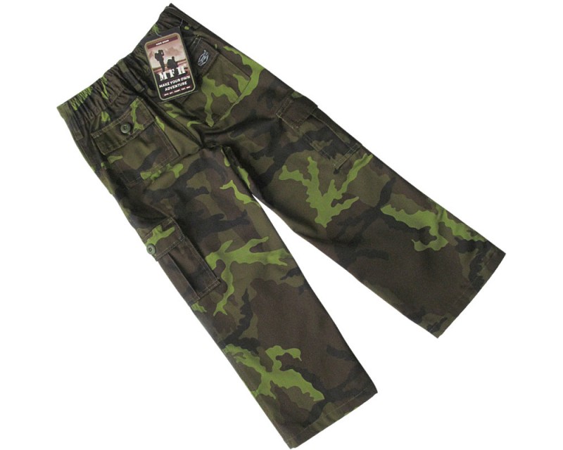Kvalitní dětské maskáče v maskování, které používá česká armáda. Kalhoty jsou vyrobené z velice kvalitního a odolného materiálu, potisk je stálobarevný. Střih je podle vzoru americké armády s 6 kapsami pro pohodlné nošení. Kalhoty jsou v pase staženy gumou.